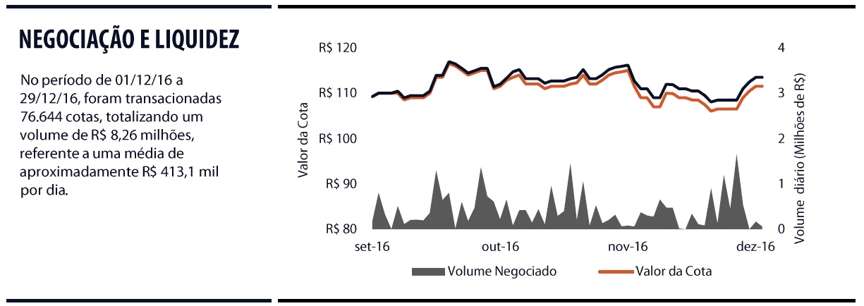 A liquidez do fundo também é ótima, contando com vários negócios diariamente.