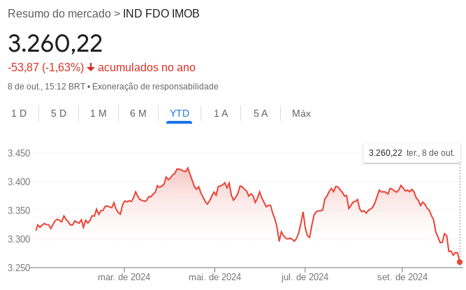 O mercado de fundos imobiliários também vem sofrendo com a atual volatilidade do mercado. Desse modo, o IFIX, o principal índice dos FIIs, está proporcionando desvalorização de 1,63% até o momento.