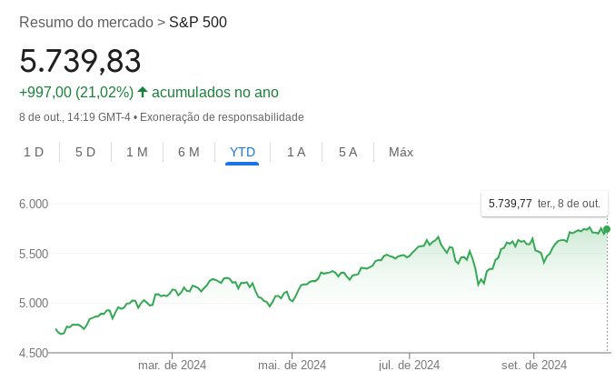 Por outro lado, o S&P 500, um dos principais índices dos Estados Unidos, está gerando retorno de 21,02% atualmente.