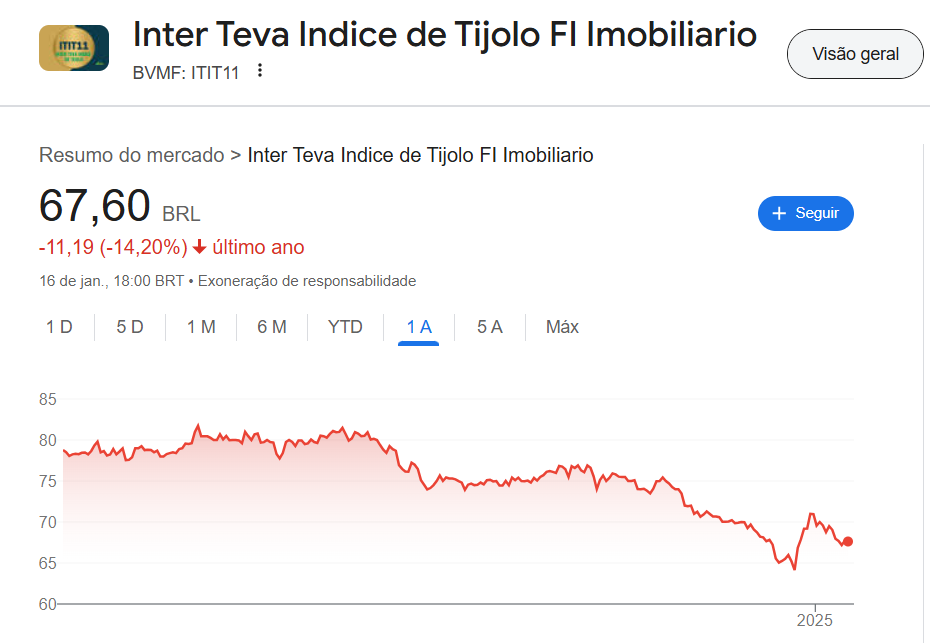Por outro lado, a rentabilidade de ITIT11, contando somente o valor das cotas, registrou queda de 14,2%.