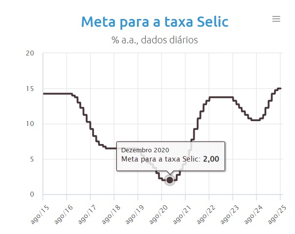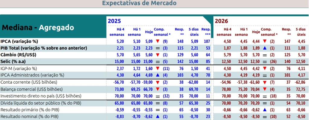 Contudo, em 2026 existe a expectativa de corte da Selic, levando a mesma até os 12,5% ao ano (Observando o Focus divulgado em 28.07.2025).