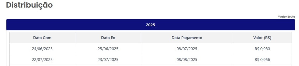 Com pagamentos que estão variando próximo dos R$ 1,20 em 2025, o ETF está proporcionando aos seus cotistas um yield de 1,19%, considerando o valor da cota atual de R$ 100,51.