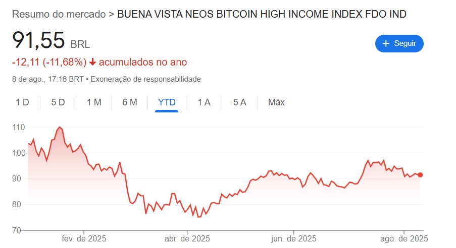Por fim, o último ETF que vamos citar aqui é o COIN11, que replica o índice: NEOS BITCOIN HIGH INCOME INDEX (BTCI). Dessa maneira, o ETF consegue proporcionar rendimentos mensais bem elevados, superando a casa dos 2% ao mês!
