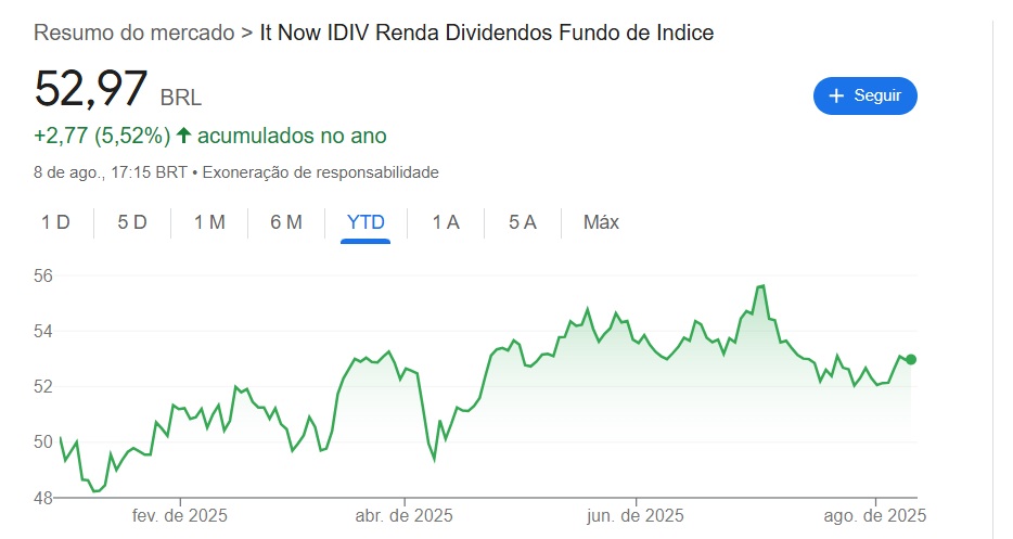 Com pagamentos que estão variando próximo dos R$ 1,20 em 2025, o ETF está proporcionando aos seus cotistas um yield de 1,19%, considerando o valor da cota atual de R$ 100,51.