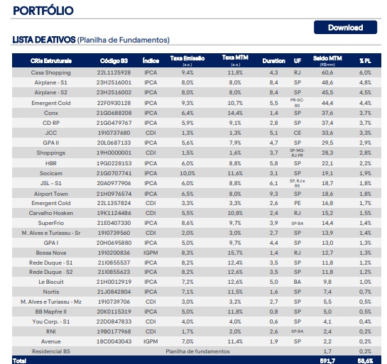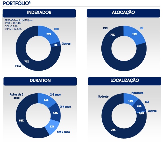 Possui uma carteira bem diversificada, com investimentos em CRIs e FIIs. A performance no mercado é boa, tendo uma desvalorização de quase 6% nos últimos 5 anos.