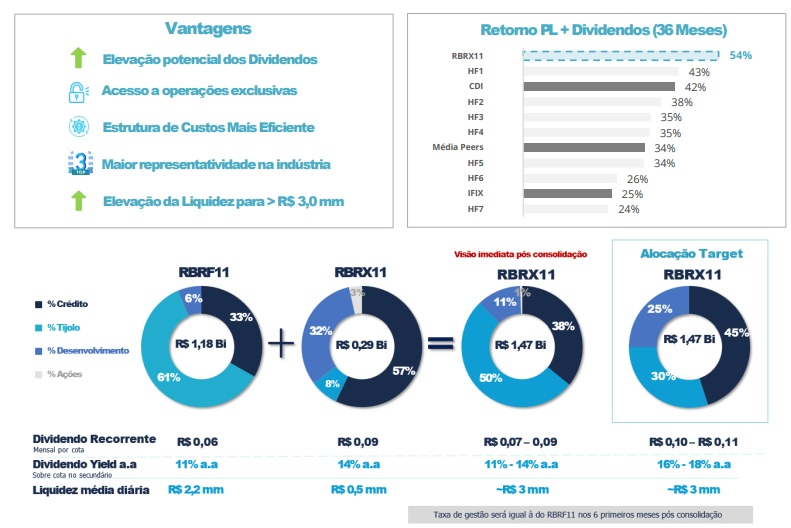 Com tantos FIIs no mercado, é natural que a movimentação de incorporação de FIIs aumente. Desse modo, eu vejo como positivo a incorporação de RBRF11 pelo RBRX11. Assim, teremos mais um grande Hedge Fund no mercado.