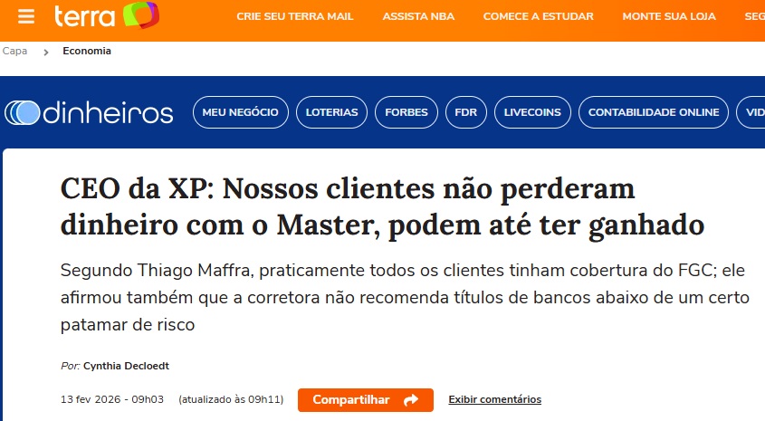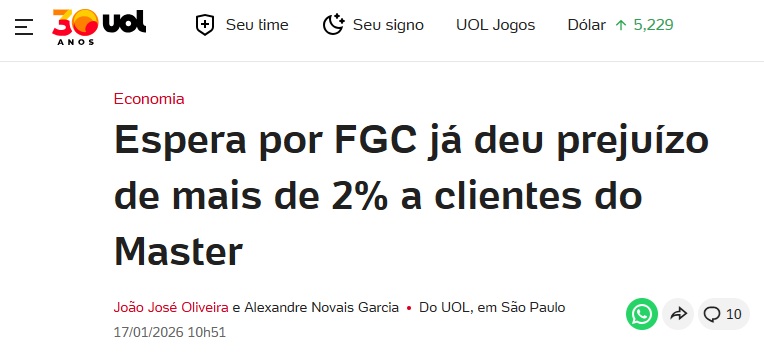 Enquanto o FGC ainda não tinha iniciado os pagamentos aos investidores do Master, alguns veículos midiáticos publicaram notícias falando sobre os prejuízos dos investidores, já que desde o dia 18/11/2025 os valores não eram mais corrigidos.