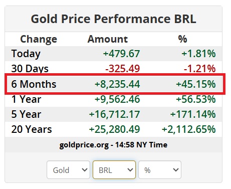 Já no Brasil, o ouro registrou valorização de pouco mais de 45%.