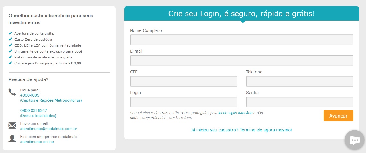 - Abrir uma conta