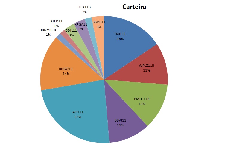 Já BBPO11 e AEFI11 tiveram grandes rentabilidades, bem superiores ao DI, certamente, se não fosse pelos dois fundos o desempenho da carteira teria sido pior.
