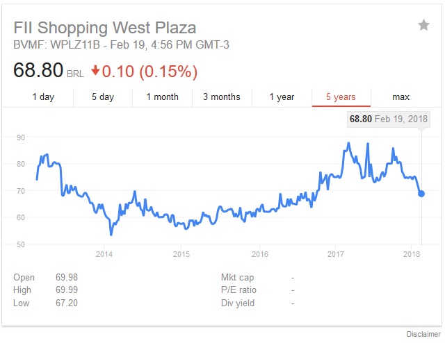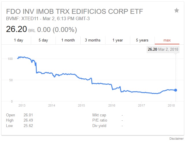 O valor patrimonial do fundo é menor do que o preço de mercado. Atualmente está por volta dos R$ 95,00. Um desconto bem alto!