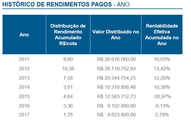 Os fundos citados, de 2012 para cá obtiveram boa rentabilidade, e sempre distribuíram valores aos investidores,