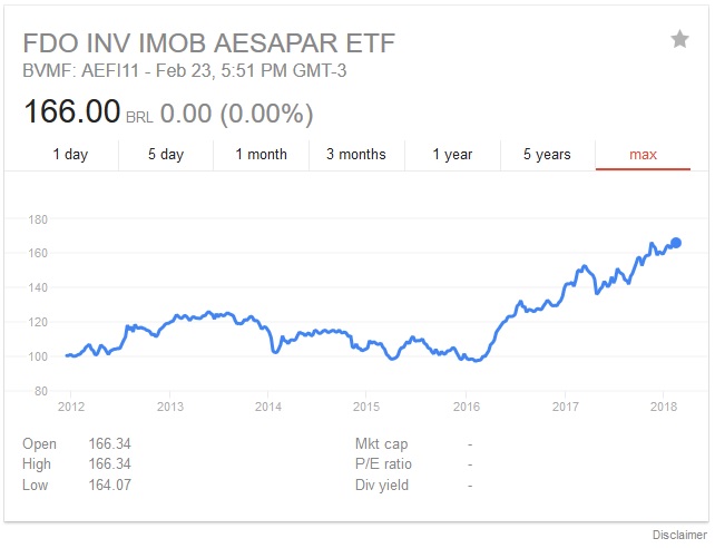 AEFI11 foi lançado em 2011, ou seja, houve uma rentabilidade por cota de aproximadamente 63%!