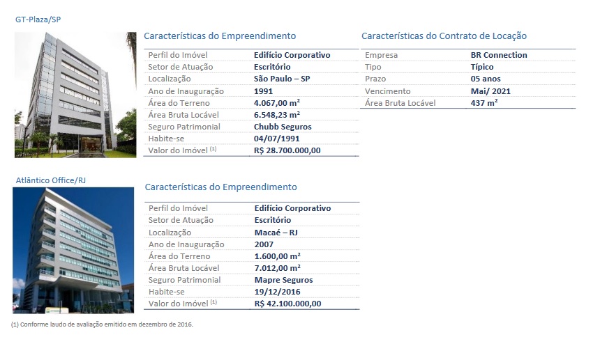 Mas não similar ao TRXL11 ou BMLC11. KNRI11 e BRCR11 possuem diversos empreendimentos espalhados pelo Brasil.