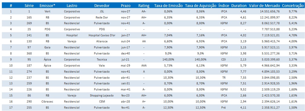Principalmente, fundos que estão bem posicionados no índice IFIX. Essa também é uma métrica que utilizo. Pode parecer algo raso, na verdade é, mas tem seu feito interessante.