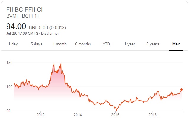 De acordo com o próprio relatório gerencial de junho/2019, BCFF11 vem registrando uma rentabilidade acima dos 7% ao ano. Só para título de curiosidade, a taxa Selic, no momento em que escrevo está em 6,5% ao ano. Portanto, a rentabilidade de BCFF11 está acima do mercado.