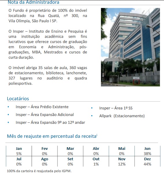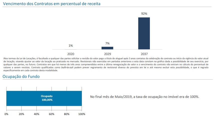 Por se tratar de um contrato junto a único inquilino, sendo que o mesmo tem duração até 2022 (em alguns casos, existem contratos vencendo em 2023), os cotistas ainda contam com certa segurança.