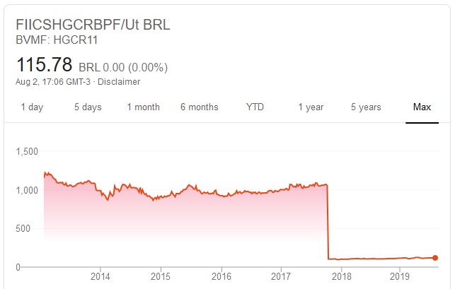 Já o ponto fraco de HGCR11 fica por conta de sua valorização no mercado. O fundo está com o valor de mercado 12% acima do seu valor patrimonial.