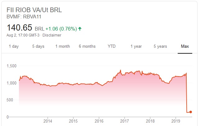 Eu acredito que a vacância elevada está repercutindo em seu valor de mercado, uma vez que o FII vem apresentando um belo desconto patrimonial.