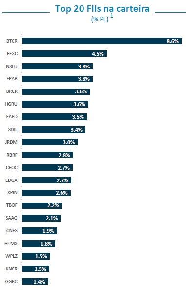 Dos fundos mencionados acima, BTCR11 é aquele com maior peso, tendo uma participação de 8,6%.