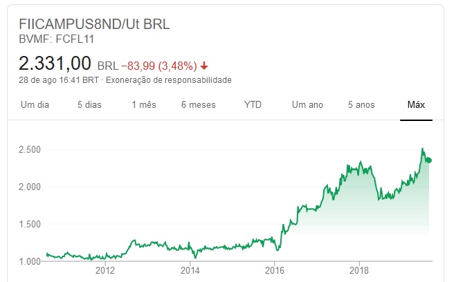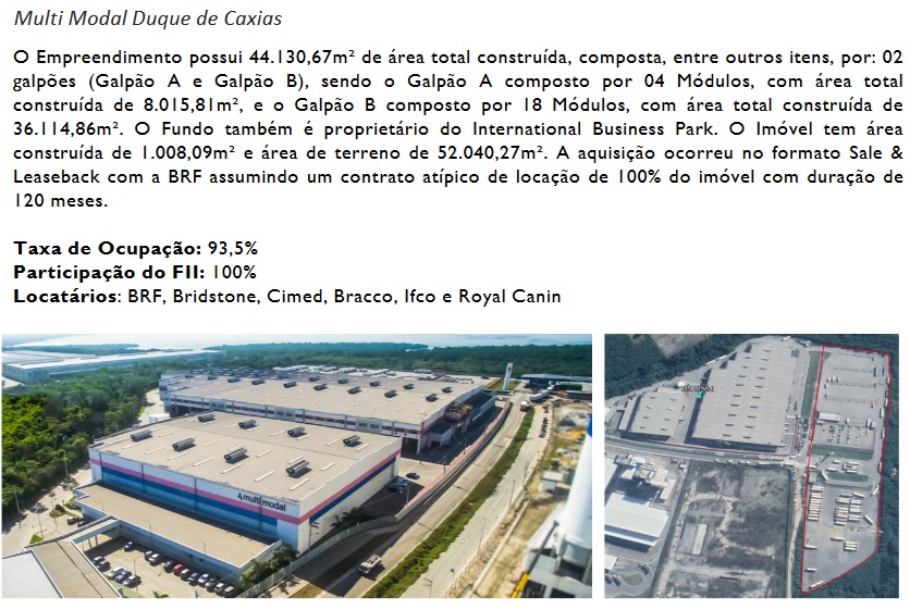 Existe também uma valorização do valor patrimonial da cota, mas é algo abaixo dos 10%. Portanto, é aceitável, digamos assim.