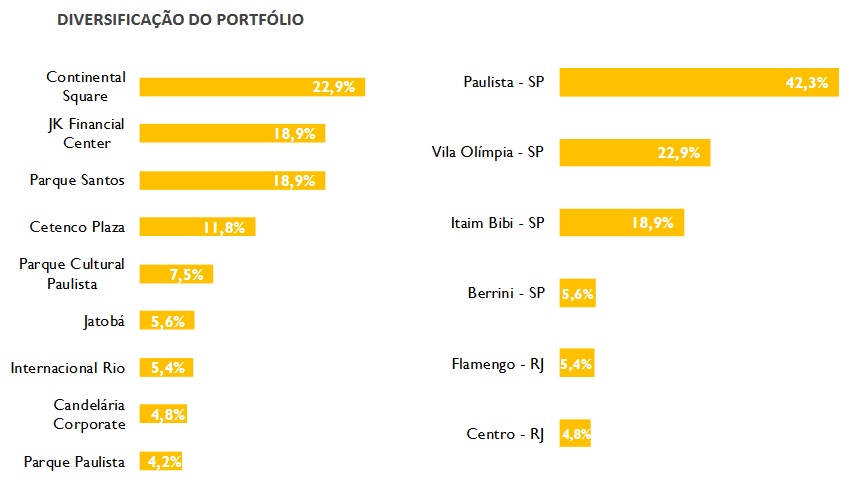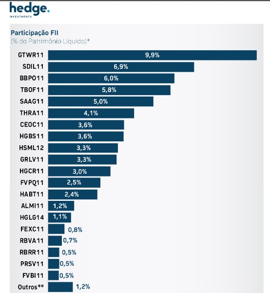 Dos fundos mencionados acima, BTCR11 é aquele com maior peso, tendo uma participação de 8,6%.