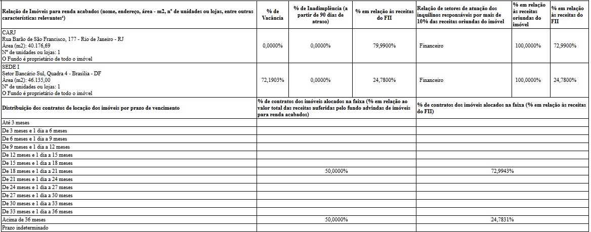 Por se tratar de um contrato junto a único inquilino, sendo que o mesmo tem duração até 2022 (em alguns casos, existem contratos vencendo em 2023), os cotistas ainda contam com certa segurança.