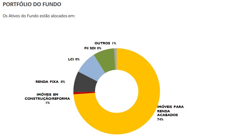 O fundo possui posição em vários ativos, desde fundos imobiliários, empreendimentos até em CRI.