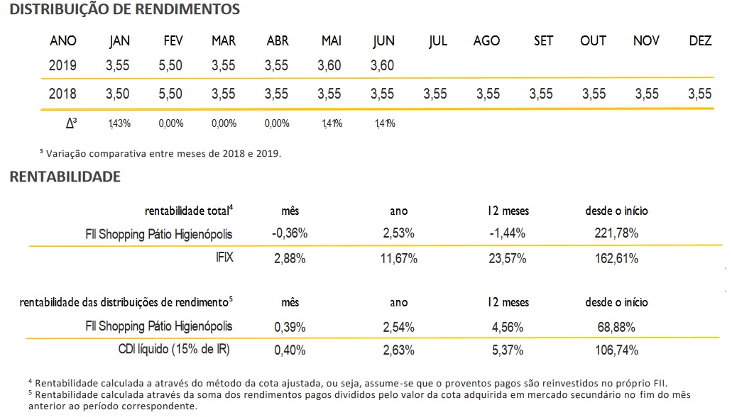 - Informações retiradas do Relatório Gerencial de BCFF11 referente junho/2019 e do Informe Mensal de junho/2019.